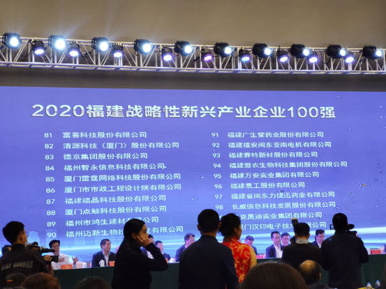 福建开云kaiyun股份有限公司入选 “2020福建战略性新兴产业企业100强榜单”
